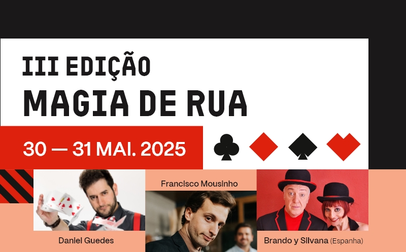 A 3.ª edição da Magia de Rua está de regresso à cidade do Entroncamento, nos dias 30 e 31 de maio. A iniciativa conta com a presença dos ilusionistas Daniel Guedes, Francisco Mousinho e Brando y Silvana (Espanha). As atuações são dirigidas ao público em geral e têm entrada livre.